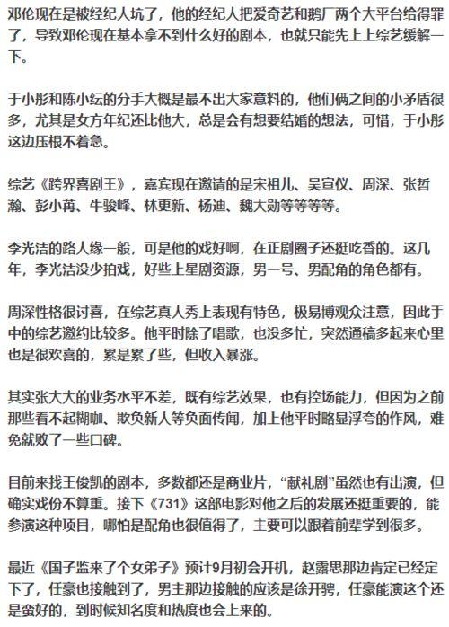 娱乐圈周五爆料的明星,让我们看到了明星们不为人知的一面。从绯闻、丑闻到公益、跨界,每一个爆料都让我们对明星有了更深入的了解。在这个充满变数的娱乐圈,明星们要想立足,不仅要靠实力和才华,还要学会面对舆论风波。让我们一起期待,下周五娱乐圈又将爆出哪些精彩爆料吧!